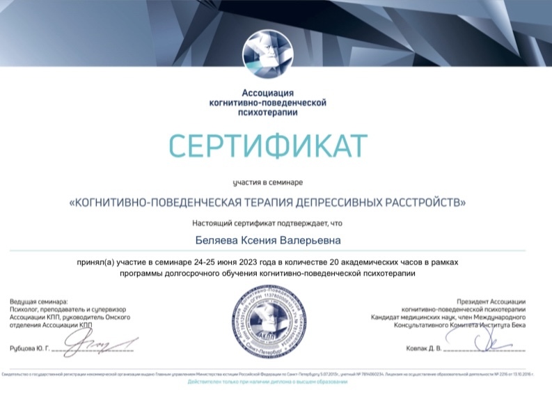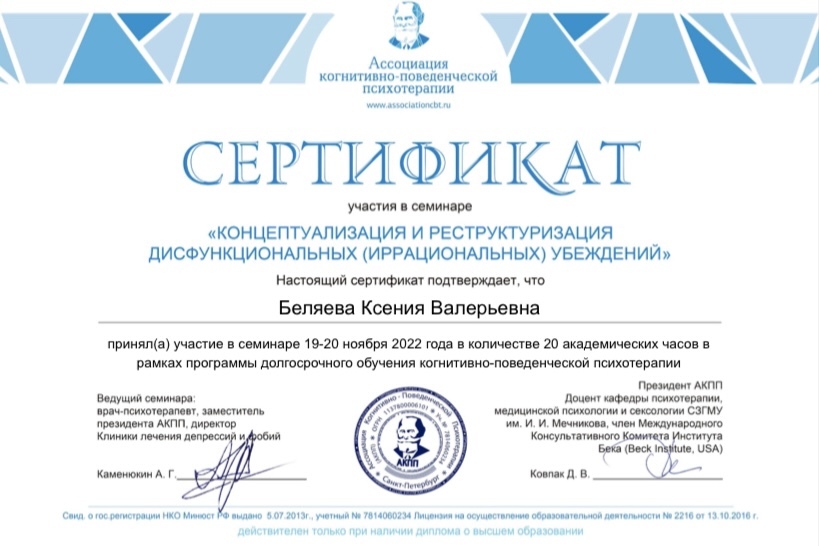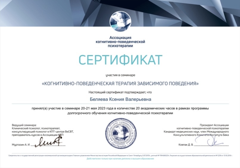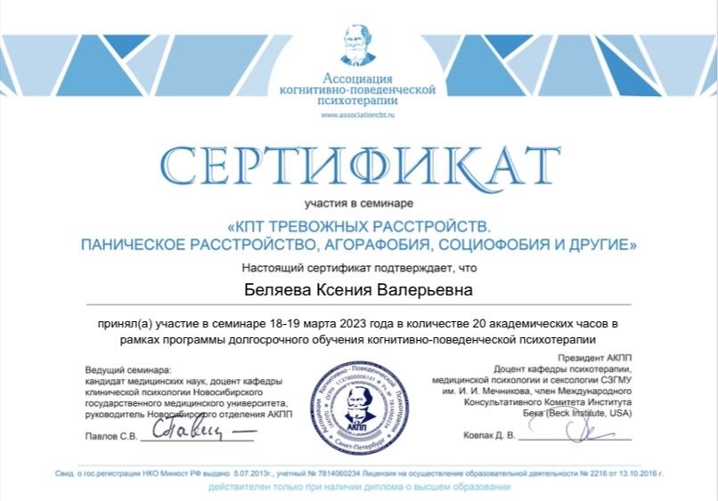 Я — клинический психолог, КПТ-психотерапевт.